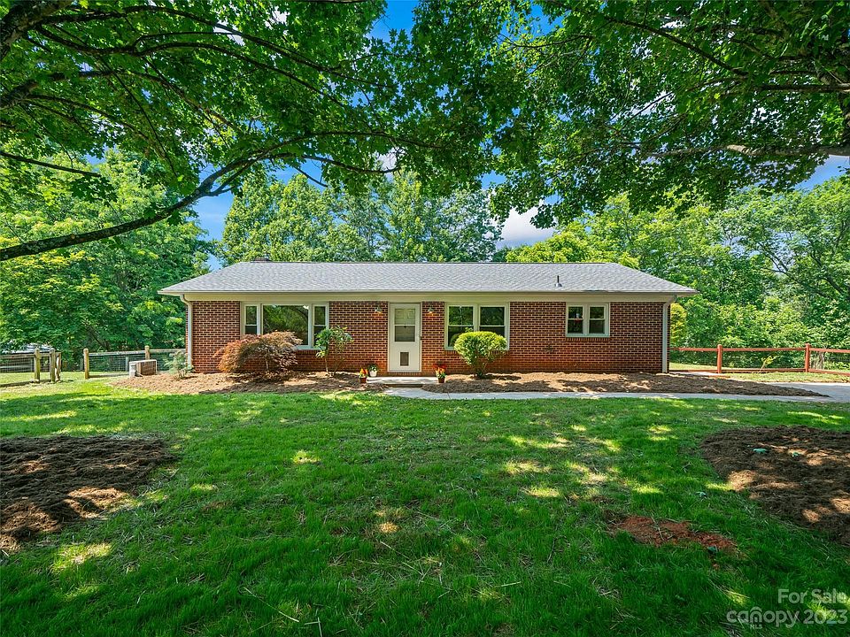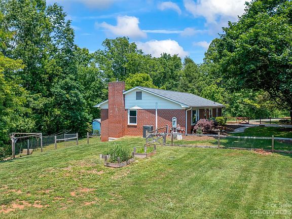 Sweet brick ranch nestled half way between downtown Weaverville & downtown Mars Hill with the most awesome acre ready for your homestead and mini-farm! Two huge maple trees umbrella the level, fenced front yard. Long range western views from the lovely level separately fenced side yard with raised garden beds. The home has beautiful hardwood floors, very spacious rooms and nice original built-ins. The windows & heat pump were installed in 2019, new roof in 2021, new water heater & well pump in 2017. Plenty of storage and room for a workshop in the basement. In addition, the heated/cooled portion of the basement has a kitchenette, wood burning stove & full bathroom (566 sq ft and not counted in HLA). Both portions of the basement walk out to the separately fenced backyard with a firepit & swing. Two additional fenced areas include a chicken coop & a separate animal coop ready for the pet pigs! Easy 20 minutes to downtown Asheville.