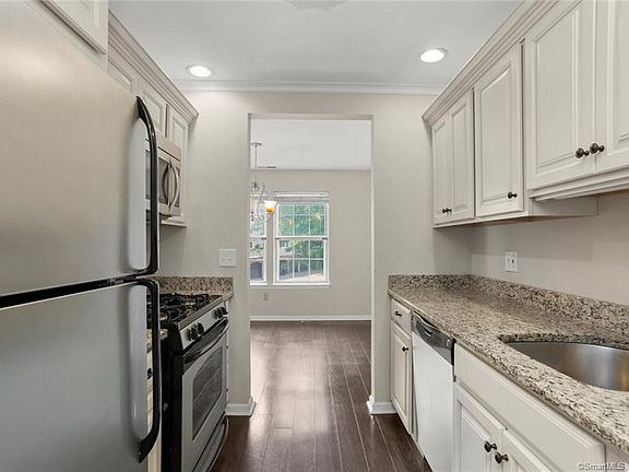 Beautiful and meticulous, highly desirable end unit in Trumbull Town Common - close to schools, parks, restaurants, library, and highways. Gorgeous hardwood throughout, Spacious master bedroom w/walk in closet. Open Floor Plan with large living room/dining room area - Perfect for entertaining! Completely new kitchen cabinetry and granite countertops, stainless steel appliances, complete new tiled bath, one car attached garage underneath (there are stairs to get onto main floor) with direct access into home. Private feel - no other unit below or above. Right Across from Pool! Perfect Location - walking distance to grocery and town hall.