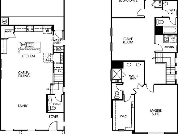 Gourmet kitchen with spacious island. Upstairs find a game room, master suite, & sizable secondary bedrooms. Light linen cabinets, creamy granite countertop, greige tile, sand colored carpet, and wheat oak vinyl plank in our Essential package.