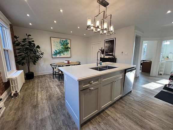2 Bedroom Apartment for Rent In Little Italy Newly renovated two bedroom apartment in the heart of Little Italy. This apartment is located on the second and third floor of a renovated victorian house. The first floor of the apartment boasts a spacious eat in kitchen with an island, a lovely living room with bay window and a powder room which also houses the washer and dryer. On the second floor, there are two spacious bedrooms and a main bathroom with double sinks and a bathtub/shower. The apartment has lots of natural light and exposed brick accents that add to its unique charm. Steps away from College St. shops, restaurants and transit.