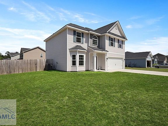 Enjoy Up to $5,000 Toward Closing Costs! Welcome to the beautifully designed Chatman floorplan, where thoughtful details and modern comfort come together. This inviting home features an oversized pantry and a conveniently located supply closet to help keep your space tidy and organized. The galley-style kitchen seamlessly connects to the breakfast nook and spacious great room, offering an open layout ideal for both everyday living and entertaining. A formal dining room with a charming bay window adds warmth and natural light, creating the perfect setting for family meals or special gatherings. Upstairs, you'll find three generously sized secondary bedrooms, a full bathroom, and a linen closet for additional storage. The expansive primary suite is a serene retreat with a vaulted ceiling, a cozy sitting area, dual walk-in closets, a double vanity, and a luxurious garden tub. Step outside to a fully fenced backyard—perfect for grilling, relaxing, or letting pets play freely. Located just minutes from Fort Stewart and local shopping, this home combines style, functionality, and convenience in one beautiful package.