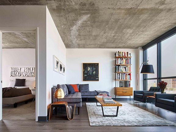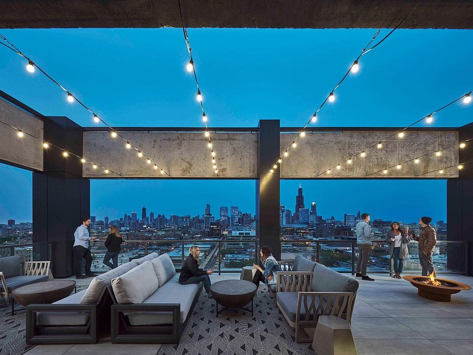 Why go out when you can stay in? Enter into lofty ceilings, huge windows and versatile seating in the ground floor social area. Then head up to the roof for a more intimate Sky Lounge experience, with indoor/outdoor lounge areas, fireplaces, grill stations, a bar, and impressive nighttime views. Summers in Chicago are not to be wasted. We made sure of that with a truly unique resort-style pool experience. Satisfy all your warm weather cravings with a refreshing pool surrounded by lounge chairs, private cabanas, and bocce ball court. The beach is now your backyard. "Soft loft" styling, features and finishes throughout. Green Globe certified for building efficiency and environmental sustainability On-site doorman and maintenance services Fully-enclosed garage parking 24/7 Luxer One package system Expansive Fitness Center with state-of-the art cardio, strength and "crossfit-style" equipment Yoga/Group Fitness Studio with on-demand classes Expansive ground-floor Bike Storage room with bike repair/maintenance workstations Covered Dog Run and Pet Wash station Unique resort-style pool experience with private cabanas, sun deck and bocce court Aqua Lounge adjacent to pool deck Rooftop Sky Lounge with bar, fireplace, game room and skyline views Rooftop Private Dining Room Exterior Rooftop Deck with fireplace, fire pit, TVs, grilling stations and lounge spaces Premium free Wi-Fi throughout common areas and amenities for resident use Convenient Access to "El" trains Dedicated Car Share on-site Dedicated "flex working" rooms and conference space for residents Renowned Fulton Market "Restaurant Row" at doorstop We are not messing around when it comes to fitness. The expansive ground-floor gym boasts state-of-the-art cardio, strength, and "crossfit-style" equipment. Plus, on-demand yoga and group fitness classes. On nice days, there's even a garage-style door to let in some fresh air. Whether you're trying to focus by yourself, or collaborate with a group, you'll find spaces that work for you. Naturally, our conference rooms are equipped with the latest technology for all your screen-sharing needs. And, we've got you covered with an unlimited coffee bar in the lobby. You'll wonder how you ever worked anywhere else. Studios, convertibles, 1-bed, 2-bed and 3-bed apartments "Soft-loft" style finishes with exposed concrete ceilings and columns Premium locally-manufactured custom cabinetry throughout Parsons-style kitchen islands with honed granite countertops* Wide-plank wood laminate flooring in common areas Premium cut-pile carpet in bedrooms Quartz countertops in kitchens and baths* Contemporary matte black fixtures and hardware throughout Full-size washers and dryers* Stainless steel appliance package with wine refrigerators* Built-in "tech shelf" with USB outlets* Ask about the Utility package!