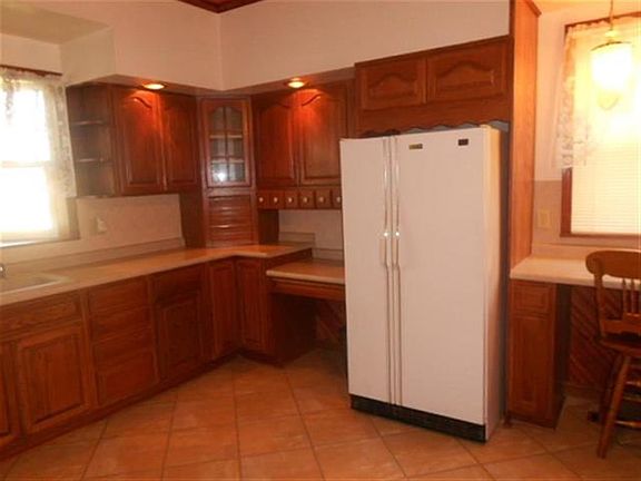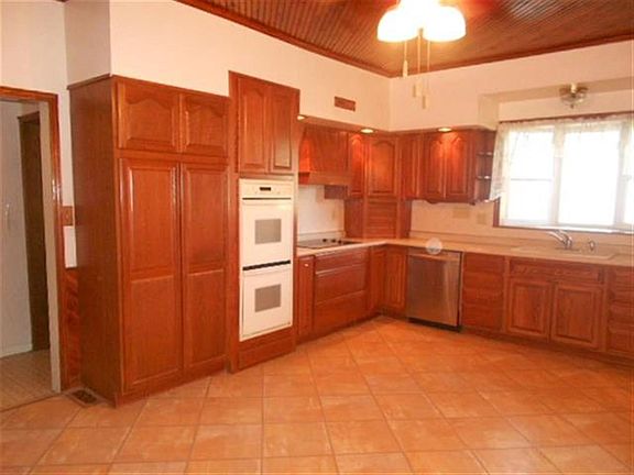 If you are looking for a large home in a small town, you will want to see this home. This home features a living room, a fantastic eat-in size redone kitchen with oak cabinets, U-shape in design, with a swing out pantry, smooth cooktop, double wall oven, stainless steel dishwasher and snack bar...truly a great feature. There are 6 bedrooms and 2 baths making this home over 2,500 sq. ft. of living area. Outside you have a huge outbuilding that features two 12 foot high garage doors, one 14 foot wide and the other 16 feet wide, a steel beamed building so the entire space is open. There is also a stairway to storage at the end, a fenced yard, extra outbuilding and front porch. A great home, great in size and amenities you will not believe!