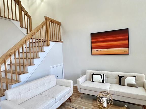 Nestled in the prestigious Hidden Lake community, this beautifully renovated end-unit is the popular Georgian model featuring an 18' ceiling and a stunning 2-story brick fireplace. The spacious living room flows seamlessly into a separate dining area, perfect for entertaining. The large master bedroom boasts a WI closet and an updated bath. The kitchen shines with new stainless-steel appliances, shaker cabinets, and a quartz countertop. With new flooring, doors, light fixtures and fresh paint throughout, this home feels brand new. An additional den offers versatile space for an office. Convenience is key with a 2nd floor laundry and a fenced-in backyard. Located close to shopping and NJ Transit, this home combines luxury with practicality. 1 year home warranty is included.