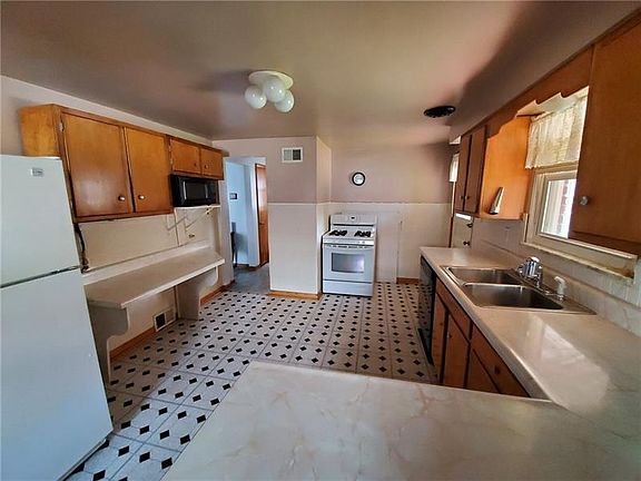 Great starter or growing family home featuring off street parking pad, large covered back porch, open kitchen dining area, first floor powder room, partially finished basement and central air. Solid bones and great potential!