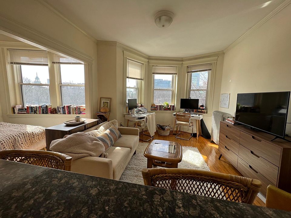 MASSIVE, gorgeous, Southwest-facing studio + Alcove for a June 1st move date! Top floor. Separate Kitchen with granite breakfast bar overlooking the main living space. . TONS of light (South and West facing)! Facing Longood Medical area. One bedroom square footage. HUGE alcove for bed! Card-operated laundry on the ground floor. A one-month broker fee applies. No security deposit. Contact Dan! One year starting 6/1/23. Heat and hot water included.