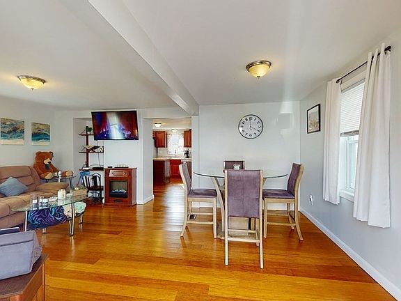 Welcome home to this beautiful, updated colonial featuring, three bedrooms, one full bathroom, updated counters, a center island, updated cabinets, laminate floors, replacement windows, a large fenced in backyard, and an above ground pool. The front door leads into a nice open living and dining area with laminate floors and flows right into the kitchen. In the kitchen you will find updated cabinets and a center island complete with granite counters. There is a full updated bathroom on the main level with a tile surround and tile floors. The carpeted stairs lead up to all 3 bedrooms, featuring laminate floors. Off the hallway is the second bathroom. There is a full basement with interior and exterior access. The laundry room is partially finished, and there is plenty of storage including built in shelves. Plenty of off-street parking as four cars fit in the driveway and two more can fit thru the gate. Enjoy summers in the large backyard, with an above ground pool, fire pit and patio.
