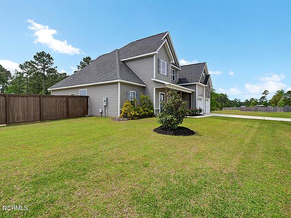 **SELLERS ARE TAKING BACK UP OFFERS. SHOWINGS AVAILABLE DAILY TILL 8PM** Peytons Ridge newest listing! Built in 2017 with upgrades, this home is like new. Come see this well maintained and cared for property. This great floor plan offers 4 bedrooms with 2 bonus rooms, 3 full baths and 1.13 acres of land. Starting on the main floor with just over 1600 square feet you have the open two-story foyer, formal dining room, living room with a fireplace, primary suite bedroom, kitchen with nook, laundry room, full bathroom, access to the two-car attached garage and second bedroom. Kitchen has granite countertops, pantry, stainless steel appliances, tile back splash, recessed lighting, crown molding and bar seating. Formal dining room has a designed tray ceiling, crown molding and wainscotting. The primary suite offers a large walk-in bathroom with a separate soaker tub and a walk-in shower, dual vanities and access to a large walk-in closet. From the first floor living room you have access to the oversized back patio deck overlooking the open backyard. On the second floor you have two remaining bedrooms, full bathroom and the two bonus rooms, to include a room over the garage and a large media room. Rooms offer good size closets. Front porch is covered with lots of space to enjoy the Spring and Summer nights. Garage has a side access door. This property is located within easy access to the back gate of USMC base Camp Lejeune. Historic town of Swansboro NC nearby offering shopping, restaurants, and other area amenities. Local area beaches within 15 miles. **KITCHEN FRIDGE CONVEYS. WASHER & DRYER AND SMALL FRIDGE IN KITCHEN DO NOT CONVEY. TV MOUNTS & DOG KENNEL ARE NEGOTIABLE. DOGS HAVE NEVER BEEN KEPT INSIDE. THE HOUSE HAS A CURRENT TERMITE BOND. HOA DUES APPLY. SELLER OFFERING COURTESY CARPET CLEANING. ** Schedule a showing today!