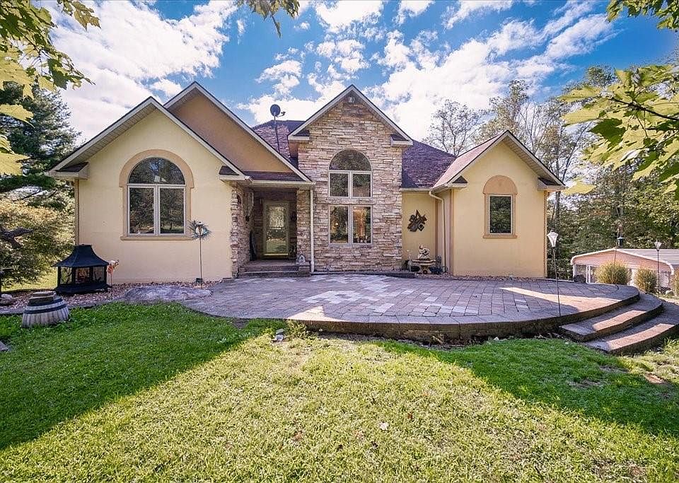 Nestled in a picturesque setting, this contemporary ranch offers the perfect blend of modern living and natural beauty. The thoughtfully designed interior features 16 ft soaring ceilings in the living room & 12ft in the rest of the rooms ,unique variety of wall niches, and a spacious primary bedroom suite with a large jetted tub so you can enjoy a spa like experience. The outdoor space is equally impressive, with a large carport and landscaped grounds that provide a tranquil escape. Experience the tranquility of country living while enjoying the comforts of a modern home. Total square footage includes finished lower level family room & office. Owner is including the barbeque grill with propane tank, the chiminea, the outdoor fireplace and water fountain in the front of the home. Because the propane tank is owned Bottini offers a better rate. Additional Information: ParkingFeatures:1 Car Attached,