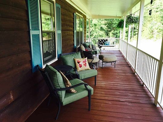 Relax on the wrap around porch and enjoy the beautiful view! This is a very nice traditional home on over six peaceful acres with woods surrounding the property. The fireplace has a gorgeous mantel and the greatroom, dining room and kitchen have a nice open flow. The kitchen has solid surface countertops, backsplash and a convenient island. You will find beautiful hardwood and tile floors throughout the home. There is a whole house water filter, two walk-in closets , master bath with double vanity and laundry area. The two car detached garage would be ideal for many uses and has heating, cooling and cold water.