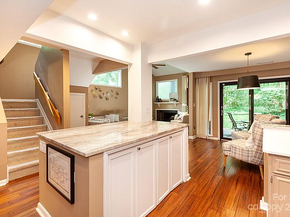 This stylish end-unit condo is filled with updates, and lives like a single family home. When you enter the front door, you see through to the back with an open concept layout. A spacious dining room leads to the updated kitchen with quartz countertops and stainless appliances. An island overlooks the breakfast area, and the vaulted living room with fireplace and two sliding doors (lovely view toward the woods, not another building). There are three roomy bedrooms upstairs, including the primary suite with two closets and an upgraded bath. Ample outdoor storage and two assigned parking spots. Relax on the private back patio, or at the complex swimming pool. Amenity-filled neighborhood with country club, marina, walking trails, parks and so much more. Live like you're on vacation every day! Welcome home.