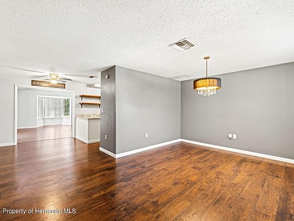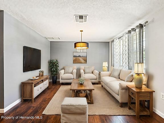 Active under contract accepting backup offers Are you looking for a home that's already been beautifully renovated and READY TO MOVE-IN? This SPRING HILL home has everything you need, from a NEW ROOF AND AC SYSTEM INSTALLED IN 2019 to ALL-NEW WINDOWS ADDED IN 2020. Imagine the ease of moving into a home that's been recently updated with NEWER INTERIOR AND EXTERIOR PAINT, gorgeous WOOD LAMINATE FLOORING in all living areas, and a kitchen that's been completely transformed with upgraded white cabinets, stylish open shelving, ALL-NEW APPLIANCES IN 2019, and stunning GRANITE countertops. This home offers not just a cozy formal living room but also a massive family room or game room. The family room, located just off the kitchen, features sliders that open up to a LARGE WOODEN DECK—perfect for entertaining. Picture yourself lounging under the COVERED GAZEBO or gathering around the FIRE PIT with friends and family. The primary suite is everything you've dreamed of, with a spacious layout, a WALK-IN CLOSET, and a renovated bathroom featuring a walk-in shower. The guest bedroom is equally inviting, situated conveniently next to the renovated guest bathroom. But wait, there's more! Just off the kitchen, there's an EXTRA ROOM that's not included in the living area square footage. What will you do with this extra space? Home office, gym, or even a THIRD BEDROOM—the possibilities are endless! Spring Hill is not just about finding the perfect home; it's also about enjoying a fantastic location. With easy access to local parks, shops, and restaurants, you'll have everything you need close by. Plus, the beautiful Gulf Coast beaches are just a short drive away, making beach going a breeze. Whether you're heading to Tampa for a day in the city or spending time soaking up the sun on the sand, this home offers the perfect balance of tranquility and convenience. Ready to make this your new home? Come see it today and fall in love with all that Spring Hill has to offer! NO HOA, NO CDD AND NO FLOOD INSURANCE REQUIRED.