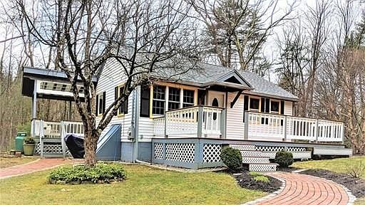 This charming updated ranch home is surrounded by beautiful plantings, stone walls, and the large level yard with gorgeous fire pit. Enjoy sitting on the substantial 24' x10' front deck watching the birds visit, or relax and savor the peace of the conservation land. Follow the brick walkway up to the covered deck, then enter into the lovely renovated kitchen. The nicely appointed granite counter tops and stainless steel appliances are framed by Dellanno cabinetry. The open floor concept invites you to flow directly into the living room. Two bedrooms and a large bathroom complete the main floor. Cathedral ceilings, skylights, custom shelving and storage space is found throughout the home. Newer windows, roof, and hot water heater. Freshly painted interior, and decks. The basement serves as ample storage or space to make into your own ideas. This cozy 2 bedroom home is located in the desired Nashoba Regional School District. Sqft vs sky lights and cathedral ceilings. Come see!