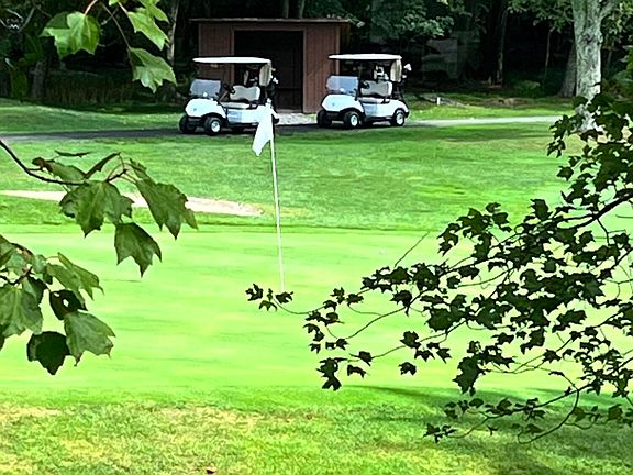 Chalet style Golf Course property located in the amenity filled Hideout POA community. House is strategically positioned on an angle at the 6th Green to capture an unobstructed 180 degree view of the 6th & 7th Fairways. Property is beautifully treed and level with an old stone wall & small stream with a clear seasonal view of Big Spring Pond. The oversized 2 car garage has a full attic accessed by a pull-down staircase & a side barn window. Large black top driveway can accommodate 8+ cars. Deck & Patio. Separate entrance work shop room. Large windows. 3/4 Bedrooms, 3 full baths., loft, dining room and living room with vaulted ceiling and Fireplace with Harmon pellet stove. Beamed & wood plank ceilings. Well maintained with Lochinvar LP Heating System and 200 AMP electric and upgraded PEX plumbing. Air B&B allowable community. Included: American Home Shield ''SHIELD COMPLETE'' Premium Home Warranty.