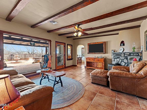 Spacious parking, room for RV/trailers. The property boasts additional highlights such as a well-tended garden area, a concrete driveway, and a patio roof adorned with rustic wood beams and a copper roof. Embracing eco-conscious living, a new irrigation system graces the landscape, while a wooden deck offers a platform for enjoying the scenic surroundings. A brand new HVAC unit ensures comfort throughout the seasons.