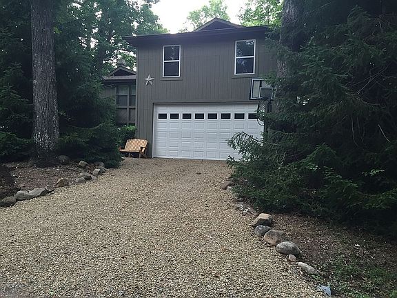 Unique lakefront home situated on private wooded lot just 4 miles from I-75. Interior remodeled in 2013; kitchen has solid wood Kraftmaid cabinets,countertops and stainless steel appliances. Large detached 24x26 garage with 10 ft ceiling and finished 3 bedroom above (built in 2006). Private floating covered 2 slip dock with boat lift, jet ski pad and full electricity. Dock is in private cove (not on the main channel) stairs on hillside to dock added in 2018. Hillside 6 passenger electric tram added in 2021.