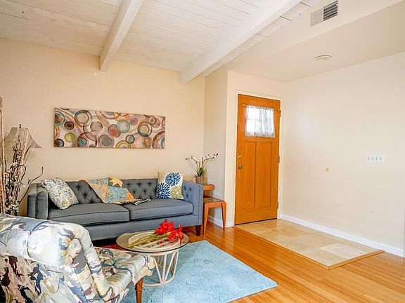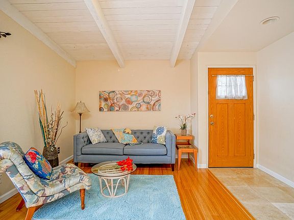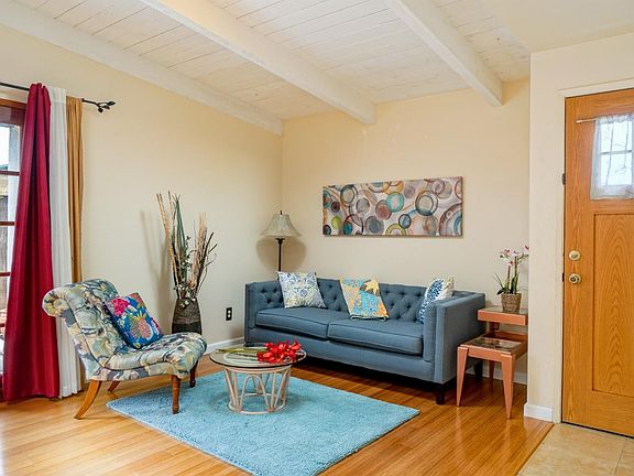 Live in prestigious San Pablo Court, planned unit development (not a condo) in Marina. This pristine one bedroom home with a finished garage is light and bright throughout. This spacious home includes granite counters in the kitchen and bathroom, extra-large closets and bamboo flooring in the great room. High ceilings throughout-even in the garage!This home comes with a washer/dryer, refrigerator and gas stove with a vent over the top. The cathedral open-beam ceilings are painted white with lovely French doors opening up to the patio. The bedroom has gorgeous wood laminate flooring. This home includes additional parking-one space in the front of the garage and another numbered parking space. Among other updates, the owner added new stucco on the exterior of this home in 2013 a new water was installed in 2018, and a new roof in 2015. What a great HOA with reserves and follow-through. HOA fees include, water sewer, garbage, property management company, common area maintenance, exterior lighting. This charming bungalow is located just a short stroll or ride to the beach also next to the Recreation Trail and Fort Ord State Park.