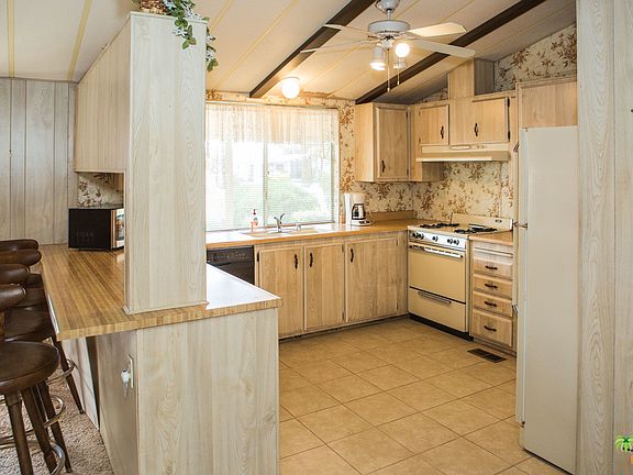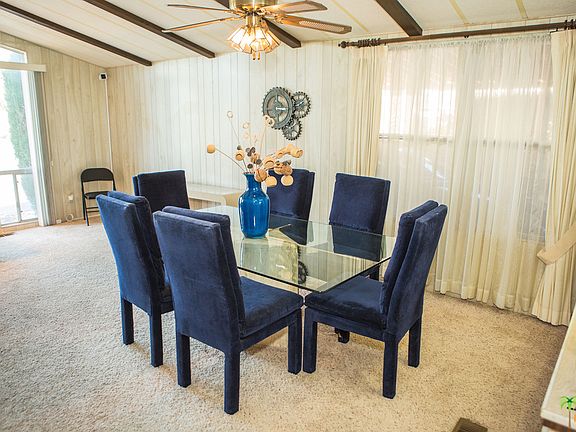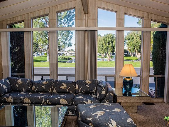 Extremely Desirable Location with views of the Pond and Park areas and right across the street from the Clubhouse and Pool. This great home offers 2 bedrooms and 2 baths and a large family room off the kitchen. Affordably priced at $49900, this could be your forever home or your desert getaway. This one comes furnished, minus the sellers personal things. The canyon is a exclusive senior gated community with clubhouse, pool, spa, pool tables, card tables, fitness room, cafeteria kitchen, tennis courts, park and pond. Onsite management available monday through friday, and buyers may be approved for the park before making an offer. Current space rent is 740 per month.