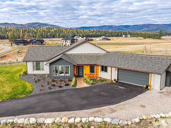Experience breathtaking panoramic mountain views in this exceptional single-level home nestled in the West Valley area. Situated on nearly 2 acres of land, this 4-bed, 2.5-bath home combines luxury with functionality with elegant craftsmanship. A grand, custom fireplace serves as the centerpiece of the living area, creating a warm and inviting atmosphere while oversized windows invite natural light and frame stunning views. The property is designed for both convenience and enjoyment. Light covenants that provide flexibility. A graveled RV pad equipped with 50-amp service for easy RV parking and hookups. The backyard is a haven for relaxation, featuring an outdoor fire pit, large patio and also boasts brand-new landscaping and a newly installed fence that boarders the property line, which enhances the overall appeal along with many other upgrades. Contact Krystal Borowski at (406)270-9825 or your real estate professional for more information.
