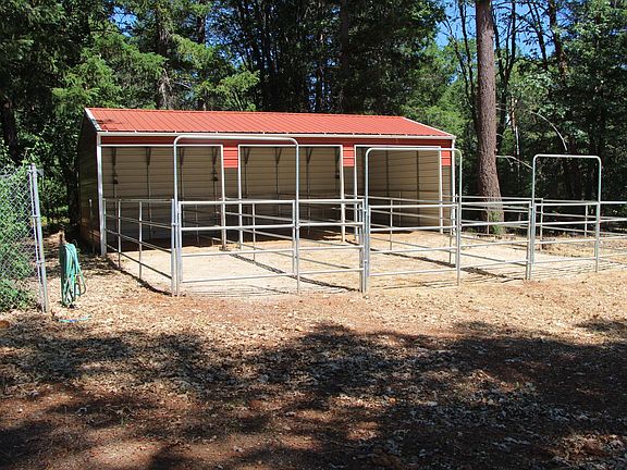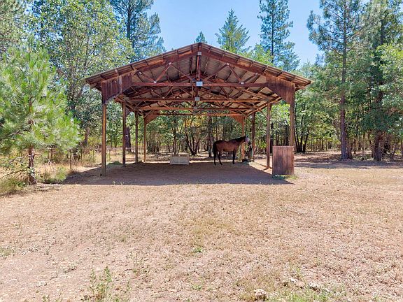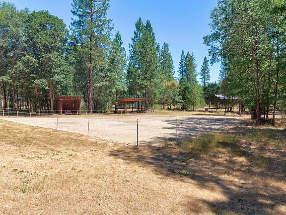 This gated, handsome, rural, 5 acres is loaded with possibility and amenities galore. 2006 quality built, custom home with covered front porch, large open family room, fantastic kitchen with granite countertops, farm sink, propane stove, and loads of cabinets for storage. The attached garage area is nearly double-sized and has storage and space for your toys and your cars. This is a terrific horse property that's just minutes from riding trails on BLM land. This has multi-family set-up potential with two separate guest quarters that might be converted into living spaces. The property boasts an adorable chicken coop with plenty of ranging yard for your birds, a dog kennel, outdoor riding arena, pole barn, 3 paddocks, a barn/shop/RV garage, along with the original de-commissioned home. The property grounds is rich in vegetation and character with madrones, oaks, pines, and fir trees. First American Home Warranty Max Plan provided with purchase.
