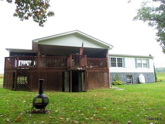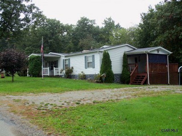 Situated on 1.24 acres is the 3 bedroom, 2 bath doublewide with full foundation. Features include a lower level family room with fireplace, kitchen with appliances and island with bar stools, large livingroom, wonderful wrap-around deck under roof, front porch under roof, 2 car carport and other out-buildings/sheds.