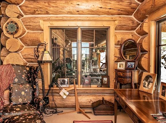 Expertly crafted log home just two miles from town and sited on 36+ acres. Very private and very convenient. Pasture for horses. Indian Pass Ditch runs through the property. Upgrades in materials and high-quality construction result in a uniquely beautiful home. 280' warm water well provides geothermal heat. 1000 gal. buried propane tank. Heated floor in master bath shower.