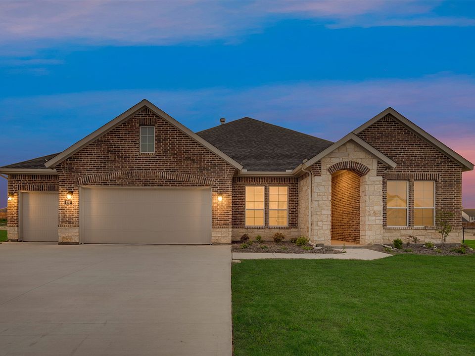 Energy Star Certified home with spray foam insulation! Beautiful open concept kitchen and dining and living area with 10 ft. ceilings throughout, mudroom with barn door and utility sink, chopped stone fireplace surround, luxury vinyl plank flooring in the main areas, Separate shower & tub in primary suite, built in cooktop and separate stainless steel oven, Raised Panel Pure White cabinets with 3 CM Blizzard Quartz in kitchen and sile stone quartz in baths, and much more!