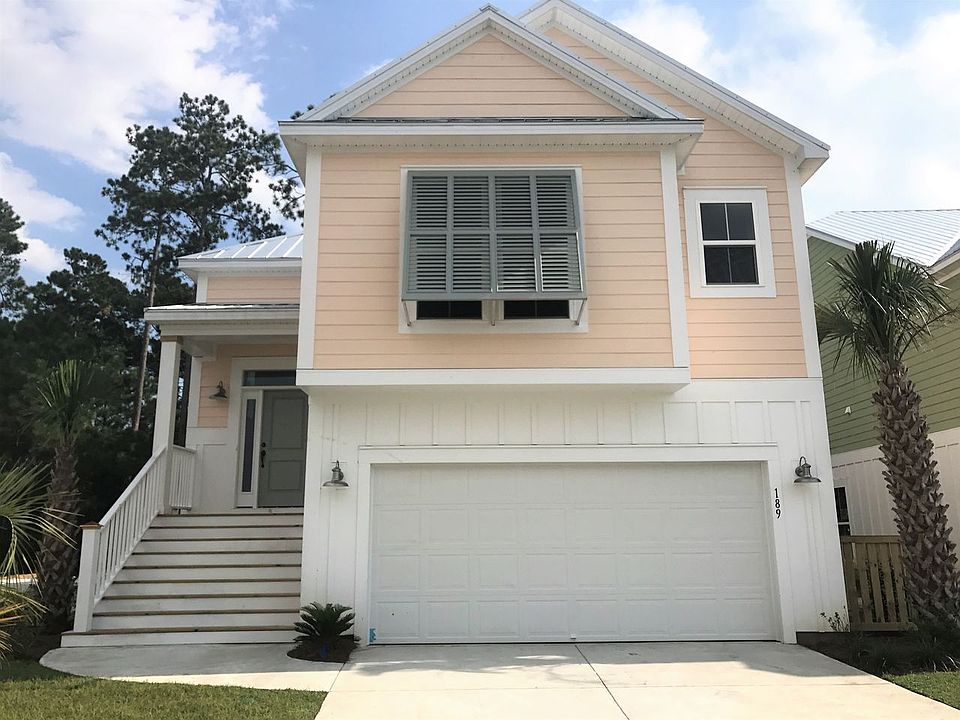 The Summerlin, a spacious social beach home. The metal roof & Bahama shutters accent the "Raised Beach" look. This home has all the daily living areas on the main floor, a very open kitchen/family/dining area cater directly to the modern social lifestyle. The spacious gourmet kitchen features a large island with silestone countertops, stainless steel Kitchenaide appliances featuring a gas stove & 42" cabinets. Enjoy breakfast overlooking your fully sodded & irrigated backyard from the main floor porch balcony. 9' ceilings on both floors are accented with crown moldings & features a trey ceiling in the living room. The owner's suite & bath offer a luxury tiled shower, a large walk-in closet & private water closet. The Summerlin offers 2 covered porches - one off the family room & one on the ground floor. 2 bedrooms, bath, & game room are on the ground floor - perfect for the kids or guests to have their own space. Built with Impact Resistance Windows & Doors throughout, offering 24 hour hurricane protection, excellent noise reduction & improved UV reduction which all contribute to lower energy costs. Our engineered roof truss systems, & ILevel TJI flooring joist use 50% less wood made from trees grown within the Sustainable Forestry Initiative. Tested using the HERS Index - ensures the home is air-tight which reduces energy consumption, prevents moisture & drafts.