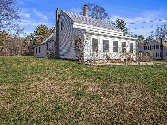 This beautiful New Englander sits on nearly an acre of open, level land. As you enter the home you are greeted with an enclosed porch with window seats. Enjoy the open, eat in kitchen with plenty of counter space and stainless steel appliances. Toward the back of the home you will find the large living room, great for entertaining. One bedroom and the full bath with laundry make this home a great option for first floor living. Upstairs there is a second bedroom, as well as a bonus room, and extra storage space great for a large closet. The 0.97 acre lot is all open and level, with a brick fire pit. A variety of flowers grow along the property, and there are also multiple blueberry bushes between the raised garden beds in the back yard, and raspberry bushes at the property edge along the left side/back of the house. The one car garage has ample space for storage on the second floor, and the oversized driveway can fit 6+ cars. This property is close to major highways and the lakes and mountains regions. Delayed Showings begin during Open House Saturday December 5th from 12 to 2pm.