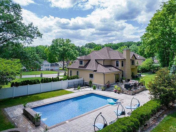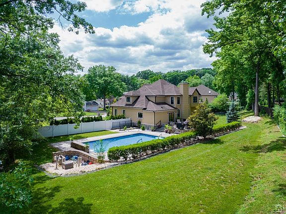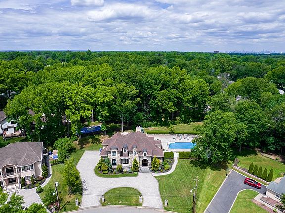 Stunning one-of-a-kind stone manor located in the heart of Colonia's prestigious and highly coveted estate section. This custom built 5 bedroom, 6 bathroom colonial home boasts outstanding craftsmanship and superior design, perfectly suited for multi-generational living. With over 6,000 square feet of finished living space this spectacular estate is an entertainer's dream. Every room offers a WOW factor with their oversized dimensions, high ceilings, and attention to detail. No expense was spared in the construction of this property with impressive imported stone and millwork, hand crafted wrought iron and wood staircase and entry doors, porcelain tile floors, and cathedral ceilings. The first floor is beaming with natural sunlight that radiates off of the cherry wood floors and includes a formal living and dining room, office, den, kitchen, and guest suite. Upstairs you will find 4 main bedrooms, 3 full bathrooms, and a generous laundry room. The primary suite offers a gorgeous retreat with an enormous oversized closet, fireplace, jacuzzi tub, and vaulted ceilings. The added bonus of the home is the fully finished basement which has beautiful flooring, a custom kitchenette, full bathroom, huge main living space, two separate rooms, storage room, and outside entrance. The possibilities are endless and the space is ideal for a private media room, home gym, wine cellar, sauna, playroom, guest suites, etc. The property is just as impressive on the outside as it is on the inside with gorgeous multi-tiered paver patios off of the kitchen which lead down to an expansive resort style in-ground pool with a waterfall. The property is perfectly suited for summer days and reminiscent of 5 star amenities. Serene, private, and luxurious this home is truly a show stopping masterpiece located in an unbelievably convenient location with close proximity to all major highways, Metropark train station, Menlo Park mall, schools, and houses of worship.