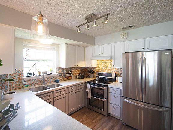 End unit with attached 1 car garage. Storage loft installed in the garage. The home has been freshly painted with new flooring. New roof in 2015. All kitchen appliance purchased within the past 3 years. The Kitchen has had a make over that includes new cabinet door, tile backslap and Granite Transformation recycled glass counters.