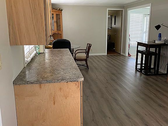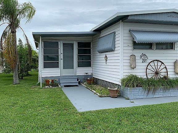 Located in Orange Harbor, a 55+ Gated Community, this home comes with all you need including NEW 2023 vinyl flooring throughout, Kitchen Appliances & FULL cabinets. The spacious Kitchen features a cute window and that overlooks the dining room area and offers tons of natural light. Other appliances include washer and dryer set. The master and guest bedrooms offer lots of space and windows to let that beautiful Florida sun to welcome your day. The Enclosed porch overlooks the lovely landscaping, the perfect spot for morning coffee and sunsets and add extra sq ft of living space. Additional outdoor amenities include multiple outdoor seating areas, including a screened in porch underneath the carport, perfect for entertaining your out-of-town guests. With a storage shed & a spacious driveway, enough space for 2 vehicles as well as a carport, what else can you ask for. Do not miss out on this amazing opportunity and come see this home for yourself!