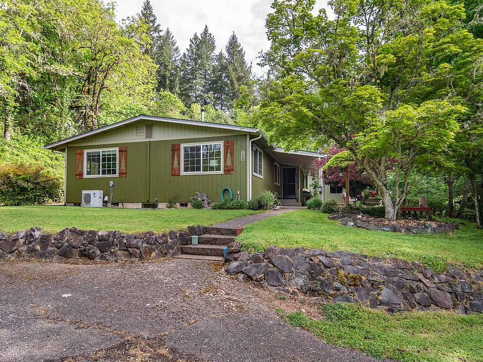 Discover your sanctuary at 189 Swanie Lane, Glide, OR. Nestled on a secluded 5.1-acre lot, this updated 1749 SF stick built home offers a serene retreat with modern amenities. The property features a spacious 24'x24' shop/garage for your tools and toys, 20'x20'x16' covered pole barn, a 6' tall fenced garden area spanning 70'x34', and a paved driveway for convenience. Inside, the home boasts a newly renovated bathroom in 2022, vaulted ceilings in the bedrooms, granite countertops, a double kitchen island, thoughtful updates, and modern appliances that cater to any culinary enthusiast. Step outside to a relaxing patio, outdoor fire pit, and seasonal view of Little River, ideal for unwinding or entertaining guests. Sitting only 1/2 mile from world class salmon fishing on the North Umpqua River, this property is perfect for outdoor enthusiasts. Low taxes, public water, public sewer and DFN service offer the cherry on top. Embrace the tranquility and make this Little River home your new haven!