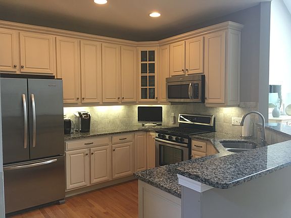 Spacious 1850 sq ft townhouse condo with an open LR/DR with vaulted ceiling, skylights and hardwood floors on the entire first level. Upgraded kitchen with granite counters, stainless steel appliances, five burner gas stove, upgraded cabinets with crown molding, finished side panels, under cabinet lighting and more. Spacious master bedroom suite with vaulted ceiling and custom roman window shade, large master bath with double sink vanity, soaking tub and separate shower, generous walk in closet with added shelving for storage. Spacious 2nd floor loft and guest bedroom with walk in closet and guest bathroom with 5 ft enclosed shower. An active 55 plus gated community offering a large clubhouse with a fitness center, sauna, library, oversized heated pool, tennis and bocce courts, putting green and more. Taxes/Condo Fees