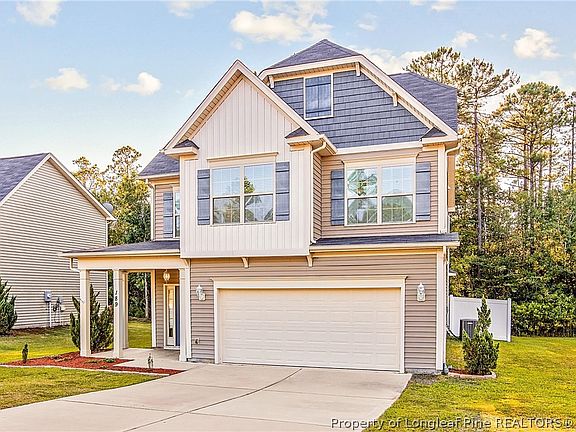 You must see this beautiful 4 Bedroom/2,5 Bathroom Home. Foyer, Hallway and Half bath with Hardwood floor, spacious Living room, propane Fireplace, Breakfast/Dining area, Kitchen, Kitchen Island with granite Countertops, stainless steel appliances. All bedrooms upstairs, Master bath has separate shower, garden tub, double vanity, Laundry room upstairs with lots of cabinets. Fenced in Backyard has a covered patio, double Car Garage, unfinished Bonus room. Amenities: Community Pool, Playground area, Fitness Center, Club House. House is in a Cul-de-sac. Close to Shopping Centers and Fort Bragg