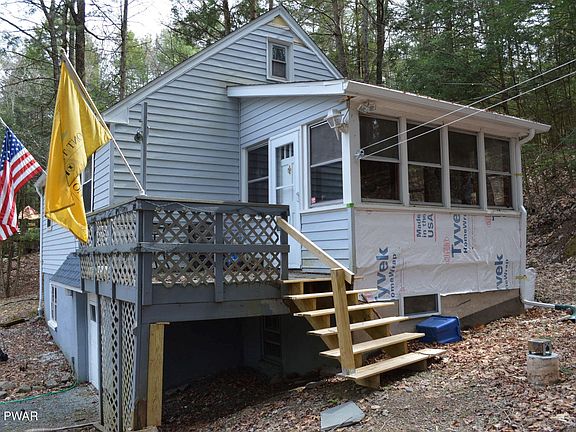 Classic Gumble Chalet located in the desirable Millbrook Community. With lake rights on Lake Wallenpaupack this is perfect place to enjoy those summers at the lake and making memories that last a life time! And fall can be one of the most beautiful times to enjoy the Poconos. Home has the classic knotty pine interior with, an open floor plan, wood burning fireplace/stove, cathedral ceiling, and heated sunroom addition. Millbrook offers a beautiful common area on Lake Wallenpaupack with a swim platform and slide plus ATVs and golf carts are allowed! Boat slips are received through the community. Ready and waiting for you to make your own memories.