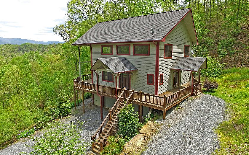 Words alone can not possibly describe the beauty of the view and surroundings in this wonderful home. It takes full advantage with lots of windows and a wraparound deck and will simply take your breath away. The floor plan is open and lends well to entertaining and the home features two master suites as well as a bunk room, loft area, and oversized garage. The setting is totally private yet is located within an upscale community only minutes away from popular Brasstown, Murphy, and Hayesville, NC. There are community pavillions and lake/river access through TVA as well. There is a 3 BR septic and bonus room could be BR with closet addition.
