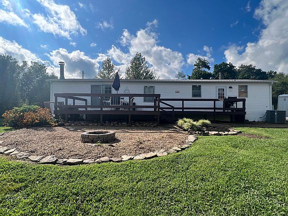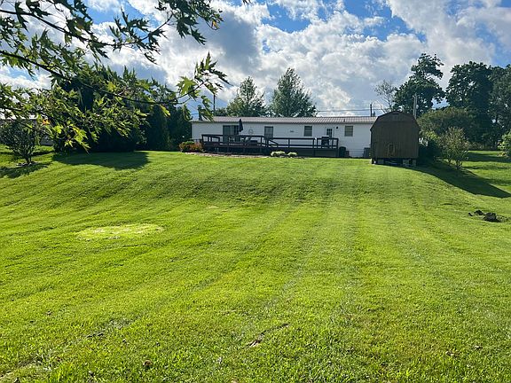 Take a look at this spacious and move-in ready double-wide sitting on a large .7 acre lot. This home has so many features you will love. Boasting 1620 finished square feet, this home has 3 bedrooms, 2 baths with a split bedroom design, vaulted ceiling in living area, the master bedroom and bath are very spacious, large living room, large den with fireplace with gas logs, large spacious eat-in kitchen with an island, pantry, kitchen appliances and plenty of space for your table, laundry room, and storage building. You will enjoy the front porch and the large back deck for entertaining or just relaxing enjoying the view. Located 10 minutes outside of town. Propane tank, washer and dryer do not convey. Buyer or buyers agent to verify exact measurements.