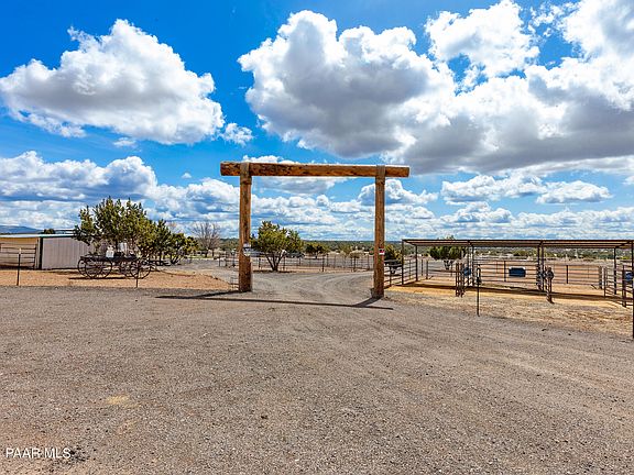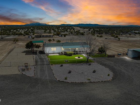 Remarkable horse property on 10 acres with good access (paved almost all the way), city water and on-grid electricity. This home is beautiful with tiles in the owner bath and kitchen, a fireplace, upgraded bathroom cabinets and counters, upgraded kitchen counters, built-ins and laminate flooring. Enjoy your views from the large covered deck as your pets or children play in the fenced-in yard and bask in the knowledge that the whole 10 acres is also fenced. There is also a covered area for your RV with full RV hookups available. Have horses? Well, this property is set up for that with covered corrals, a full-sized arena, a round pen and plenty of pasture for your horses to enjoy. You also have a large tack and storage building. With the National Forest nearby,