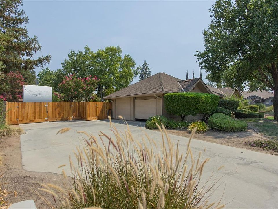 RV Parking on 1/3 acre lot in Buchanan High School district! One-owner 4 BR-2.5 BA custom home has been lovingly maintained for 28 years. Updated kitchen with creamy granite counters & island, newer appliances, crown moldings, pantry, & easy-care aggregate flooring that flows into the cheery breakfast area & isolated BR/BA. The whole house has interesting architectural details, including varied ceilings & arched windows! Vaulted ceiling & large windows give a light, open feeling to the spacious great room that features a built-in bookcase & fireplace. Formal dining room offers a coffered ceiling & cabinets with granite buffet. Lofty ceilings in the master BR & elegant BA, plus 2 sinks & soaking tub. This is a great home for entertaining indoors & out, w/huge under-roof patio. Attractive low-maintenance landscaping is also water-conscious. Side-entry garage & gated/fenced RV parking & Tuff Shed, easily accessible from the back yd. 624 sf garage. All this & award-winning Clovis schools.