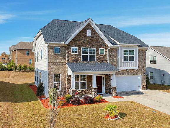 Welcome to this stunning, pristine home that’s truly move-in ready and designed with both elegance and comfort in mind. Ideally located just minutes from I-77 and Fort Jackson, this home offers convenience for commuting and daily travel. The moment you step inside you’re greeted by a beautiful foyer featuring classic wainscoting setting the tone for the refined details you’ll find throughout. On the main level, enjoy a private office with French doors perfect for working from home. A formal dining room showcases elegant arches, chair rails and a coffered ceiling, creating a warm inviting space for gatherings. The sprawling living room features a cozy fireplace, making it the perfect spot for relaxing and entertaining. The heart of this home is the spacious eat in kitchen ideal for cooking, hosting, and everyday living, offering granite countertops, an island, and a charming farm sink. A convenient half bath and luxury vinyl flooring flowing throughout the downstairs complete this thoughtfully designed layout. The hardwood staircase adds a seamless, upscale aesthetic as you make your way to the second floor. On the second floor, the primary suite includes a tray ceiling, a spa-like bath with a garden tub, separate shower, private water closet and dual closets. Four additional secondary bedrooms each contain walk-in closets, ensuring everyone has ample space and storage. A full bath with ample counter space serves the bedrooms upstairs. The laundry room, conveniently located on the second floor, provides added convenience for everyday living. Multiple storageclosets throughout the home have even more functionality. Step outside to your own outdoor oasis, perfect for entertaining year-round. Enjoy a screened patio and an extended grilling area, providing plenty of space for relaxing, dining, and hosting friends and family. This home also includes an irrigation system to keep your lawn green and a tankless water heater for added efficiency and endless hot water. Offering exceptional space, style, and convenience, this home is simply waiting for you to make it your own! Disclaimer: CMLS has not reviewed and, therefore, does not endorse vendors who may appear in list