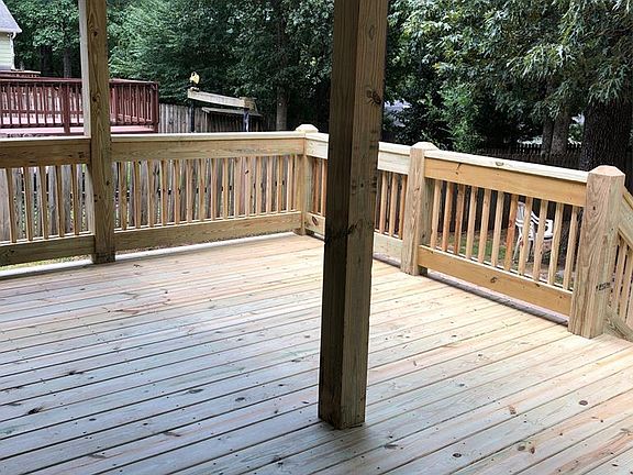 This light, airy one story, open floor plan has vaulted ceilings with a big kitchen that opens into dining room and living room. Gas Fireplace with logs in living room and ceiling fans. Door from kitchen opens onto large, 20'X20' deck with spacious shed and fenced yard. Great landscaping and two car garage makes this home a jewel in the Villas. Brand new roof and brand new deck which is partially covered.