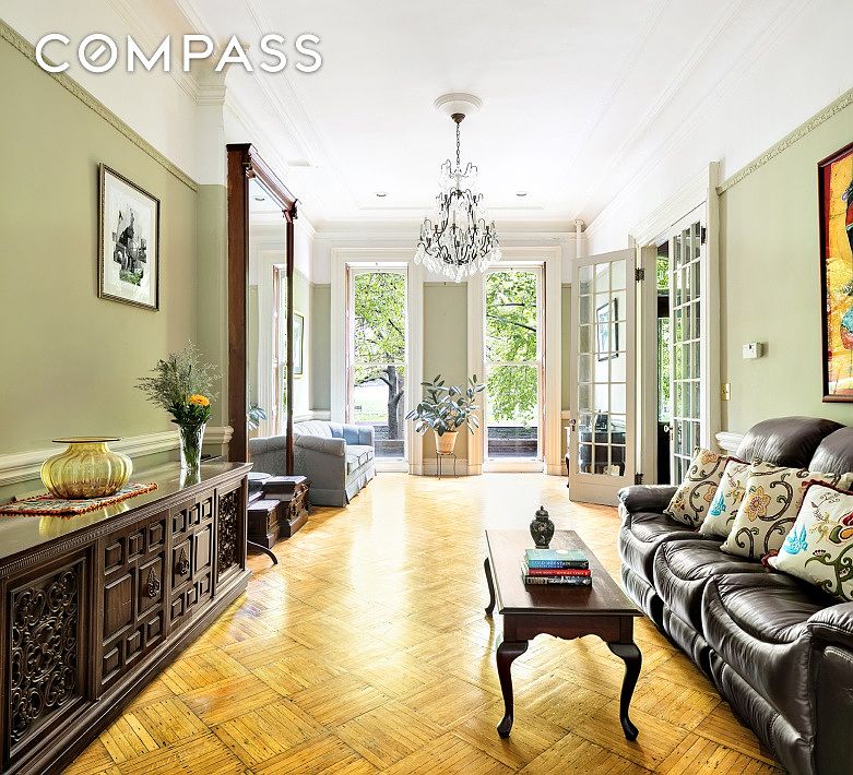 Prized location on picturesque Washington Park with protected and unobstructed park views! 189 Washington Park is a 20 foot wide, 4-story two family home with approximately 4,346 square feet of interior living space and 1000 square feet of exterior comprising a magnificent garden. Originally constructed c. 1875, this imposing Italianate-style home is on the market for the first time in 40 years. This gracious sun-filled townhouse offers privacy, stunning views and retains some of the original architecture. Pre-war details include: pocket doors, inlaid floors, wood burning fireplaces with hand carved mantels, and three grand pier mirrors. All the floors are connected by a classically styled hand carved sculptural stairway with courted railing. The sprawling upper triplex has 5 bedrooms 2 bathrooms, home office, den and 4 wood burning fireplaces. The stunning parlor floor has 12' ft ceilings, a beautiful original pier mirror, a formal dining room and a large eat-in kitchen. The garden level offers a separate and private entrance for the two bedroom one bath income producing rental. Situated on one of the most desired blocks in Fort Greene, on a tranquil park setting, this remarkable townhouse is unusual in that it is flooded with light and boasts wonderful park views. Here is an opportunity to combine the very best attributes and features for a gracious lifestyle: magnificent interior space, beautifully maintained outdoor space and exceptional architectural detail. Delivered vacant.