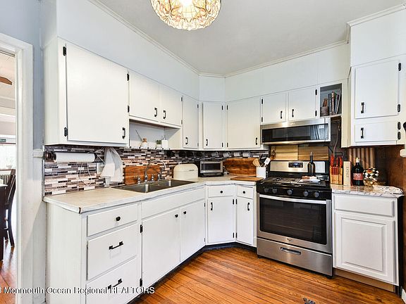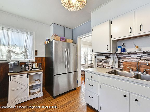 This charming 1920's old world charm style home located in desirable section of Belford.. enter into enclosed front porch with french door to living room/den, warm welcome with a cozy wood burn fireplace in living room, galley kitchen with separate dining room for your holiday entertaining, large deck off kit to backyard with above gr pool, all orig hardwood floors.. Master bedroom is on main level and updated full bath.. 2nd floor features 2 nice sized bedrooms and a 4th small bedroom/office.. all original hardwood floors on 2nd level as well. Full unfinished basement has plumbing roughing... washer and dryer and storage.. convenient location close to all stores, restaurants, schools and NYC buses! Don't miss out on this opportunity to own a single family detached for the price of condo!