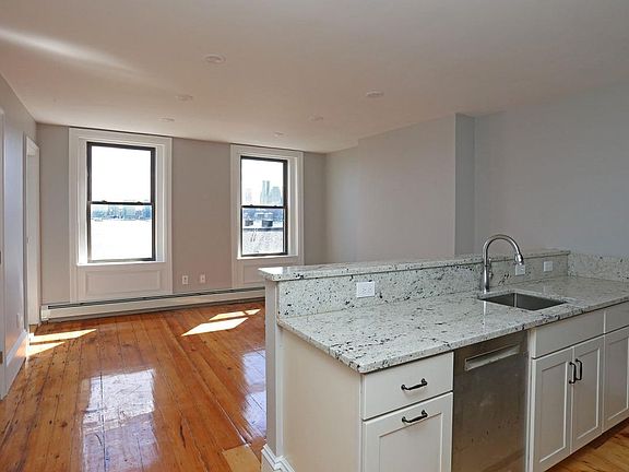 Don't miss this ! 1 Bed 1 bath Unit. Gut renovated units, efficient. All stainless steel appliances. Gas stove. Frig. Microwave. Garbage disposal. Sink. Granite counters. Marble Bath. IN UNIT Washer/Dryer. Outstanding views of the city and Boston Harbor! Private park in the back yard. Outside common patio. Walking distance to MBTA and Maverick Sq. East Boston residents pay .20 cents for the tolls ea way. 12 months