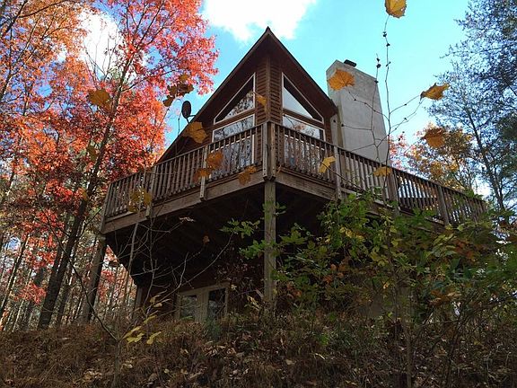 Chalet with den, loft, fireplace, unfinished basement, oversize lot, wrap around wood deck.