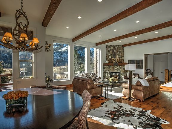 Arguably some of the best views and location in Mammoth. This home overlooks the Snowcreek Golf Course and has sweeping views of the Sherwins and Mammoth Rock. This custom home is located in the only gated community in Mammoth Lakes and is situated at the end of the street offering privacy and easy access to the meadow. Upgraded with hardwood flooring, an updated master bathroom and kitchen, remote controlled electric blinds, huge bunk room, large south facing deck and sold furnished.