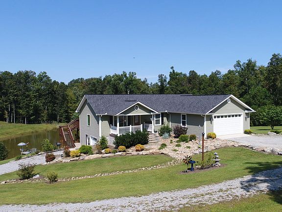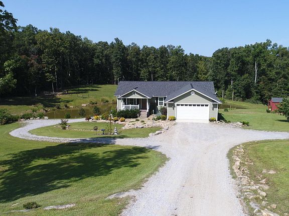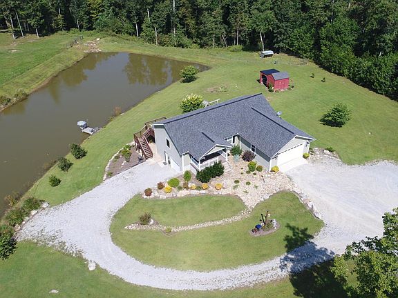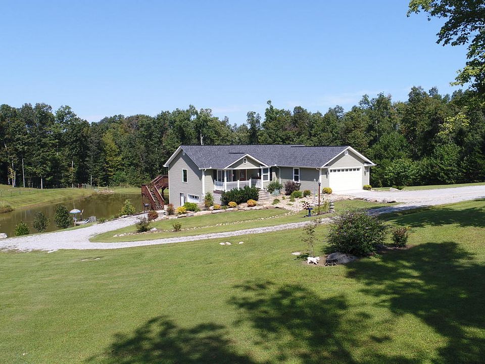 This naturally private estate includes extra storage shed, barn, two fenced in areas for animals, private Koi pond with dock and two streams. Home is equipped with picture window in living room, vaulted ceiling, covered front porch with ceiling fan, two car garage and basement large enough for automotive storage/workshop. Basement 28 feet deep. Barn 24 feet deep.