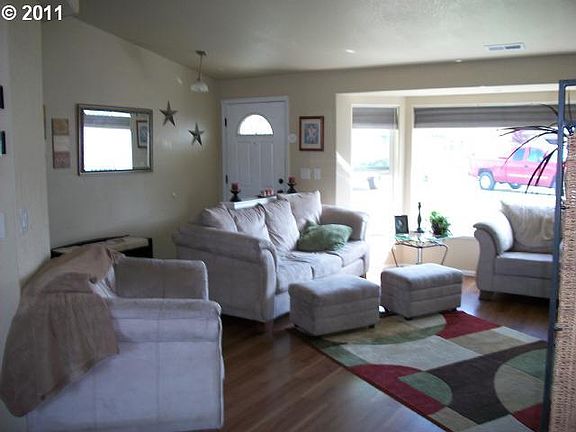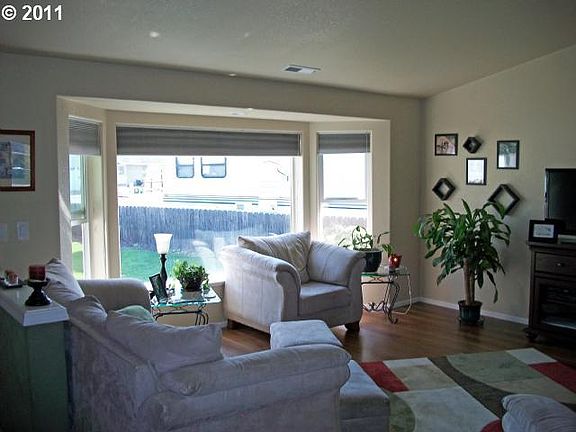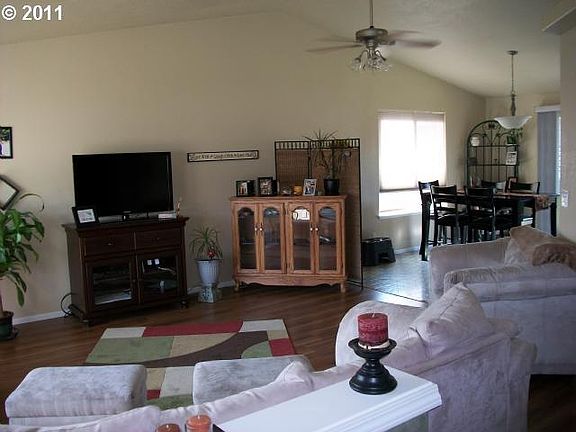 Great open floor plan in this newer 4 BR, 2 BA home. Laminatee flooring, Berber in bedrooms, large master suite with walk-in shower. Large island & pantry in kitchen. Bay window & custom blinds in living room. Nicely landscaped front yard with sprinklers, large rear yard (fenced), wood patio & deck. Located in a cul-de-sac with other newer homes.