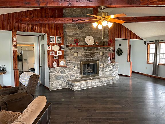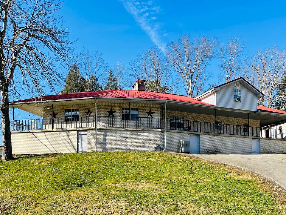 This big beautiful home near Lake Cumberland has been completely transformed! As you step through the front door into the massive living room you find high vaulted ceilings w/rustic wooden beams exposed, gorgeous stone gas fireplace, and an open loft w/unique spiral staircase. Main level features new engineered hardwood throughout. The layout of open-concept kitchen/dining room offers so much entertaining space w/counters & cabinets galore! Master w/tiled ensuite, laundry, & 2nd full BA finishes out the 2098 sqft on this level, w/another unfinished 2098 sqft of basement below! SO MUCH ROOM! Upstairs are the additional 3 BR w/ 2 unreal walk-in closets! This cut-brick home w/complete wrap around porch sits on a lovely 1.6+/- acres that borders Corp of Engineer property on one side. Huge concrete floored detached garage & storage building w/root cellar are perfect for storing a boat, or any number of things! Unlimited potential as vacation rental also w/ Echo Point boat ramp near!